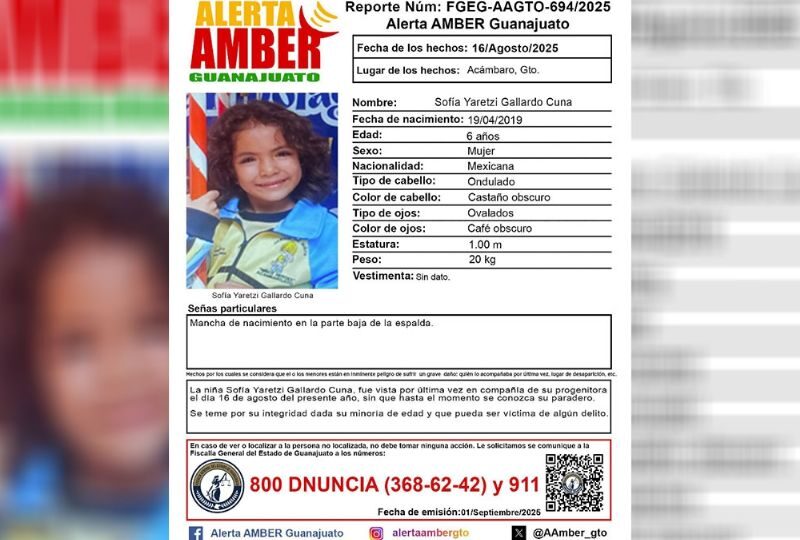Publicado enguanajuato-sur Guanajuato en alerta: Desaparece Sofía Yaretzi Gallardo en Acámbaro por Redacción AM2 septiembre, 2025