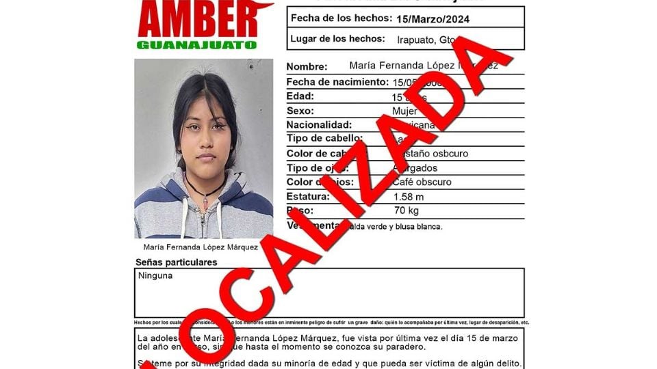 Publicado enirapuato Localizan con vida a la irapuatense María Fernanda López y desactivan Alerta Amber por Redacción AM12 abril, 2024