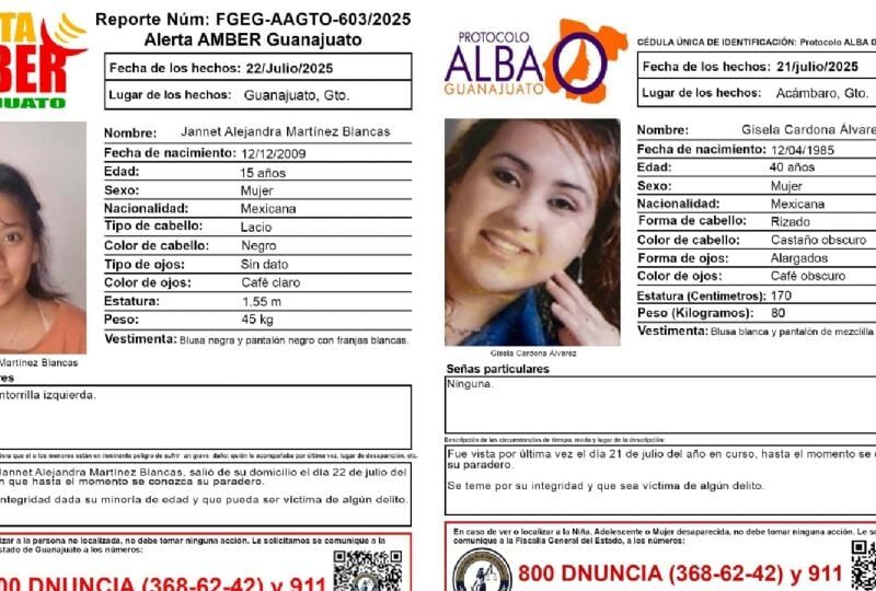 Publicado enguanajuato No localizan a Jannet ni a Gisela; desaparecieron en la capital y Acámbaro, respectivamente por Redacción AM25 julio, 2025