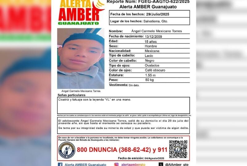 Publicado enguanajuato-sur Urge localizar a Ángel Carmelo Mexicano: Desaparece en Salvatierra y está en alerta todo Guanajuato por Redacción AM5 agosto, 2025