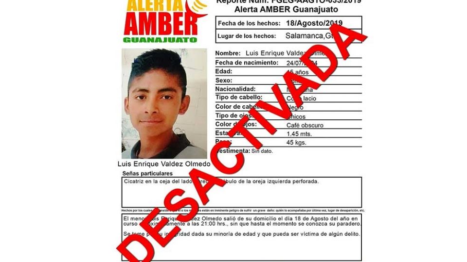 Publicado ensalamanca Alerta Amber: Localizan con vida a Luis Enrique Valdez Olmedo, desactivan alerta en Salamanca por Redacción AM27 julio, 2022