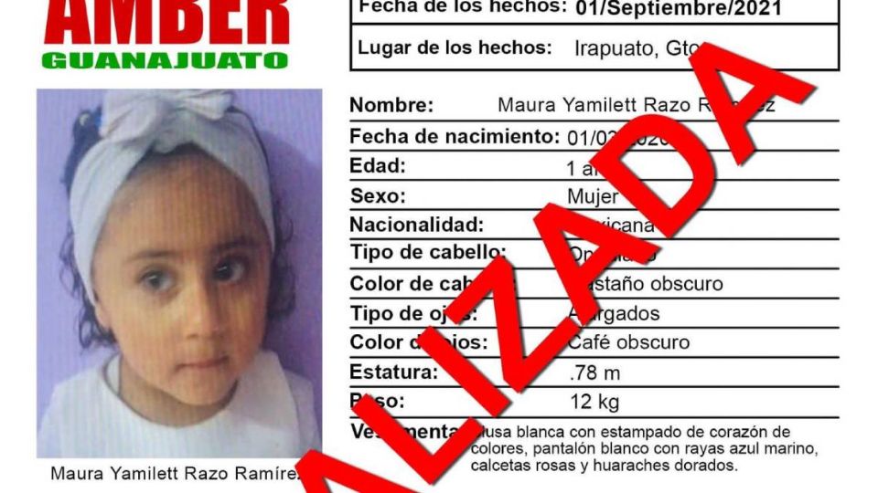 Publicado enirapuato Alerta AMBER: Localizan con vida a Maura Yamilett, niña de un año desaparecida en Irapuato por Redacción AM20 septiembre, 2021