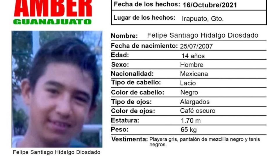 Publicado enirapuato Alerta AMBER Irapuato: Buscan a Felipe Santiago Hidalgo Diosdado, de 14 años por Redacción AM18 octubre, 2021