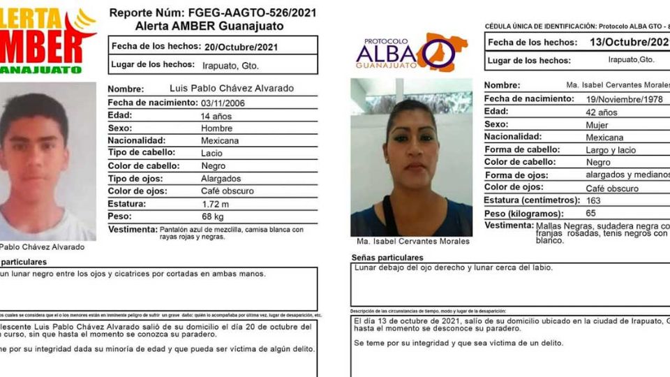Publicado enirapuato Alerta Amber Irapuato: Desaparece Luis Pablo Chávez Alvarado y Ma. Isabel Cervantes Morales por Redacción AM21 octubre, 2021