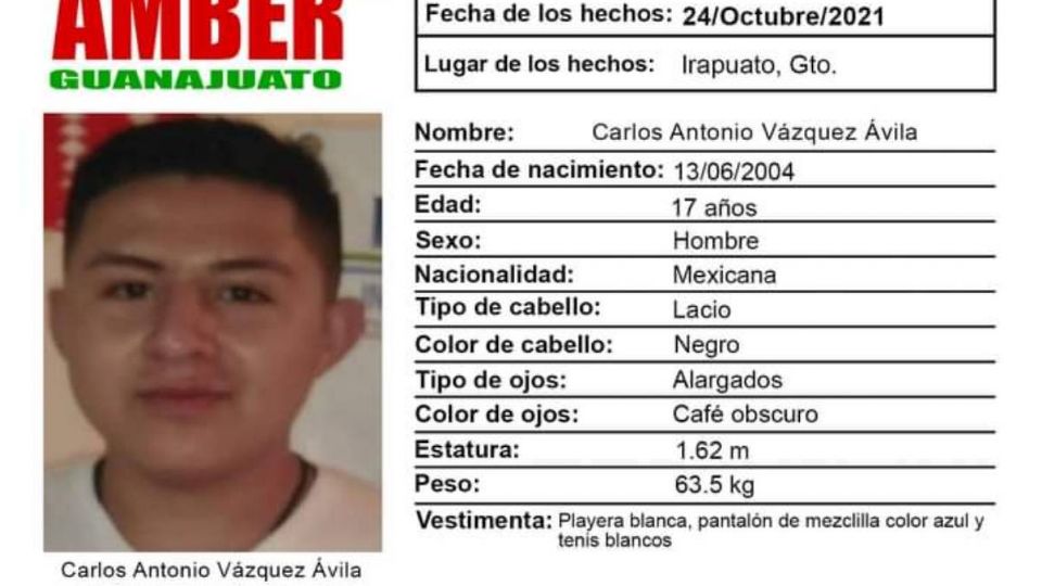 Publicado enirapuato Alerta AMBER Irapuato: Piden ayuda para localizar a Carlos Antonio Vázquez Ávila desaparecido en Irapuato por Redacción AM26 octubre, 2021