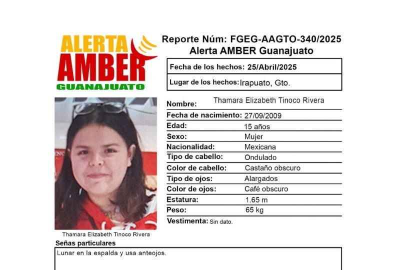 Publicado enirapuato Desaparece Thamara Elizabeth Tinoco Rivera en Irapuato y activan Alerta Amber en Guanajuato por Redacción AM26 abril, 2025