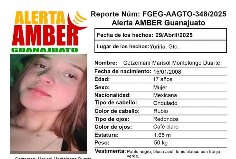 Publicado enguanajuato-sur Activan Alerta Amber: Desaparece Getzemaní Marisol Montelongo Duarte, iba a la prepa Cecyte de Yuriria y jamás llegó por Redacción AM1 mayo, 2025