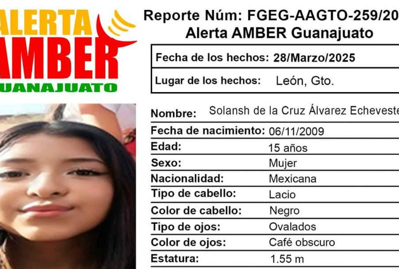 Publicado enleon Desaparece quinceañera en León: Solansh ya no regresó a su casa desde el 28 de marzo por Redacción AM31 marzo, 2025