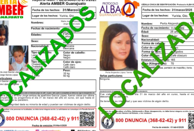 Publicado enguanajuato-sur Alerta en Guanajuato: Desaparece Perla López Torres y sus hijos María José y Jorge en Yuriria por Redacción AM2 abril, 2025