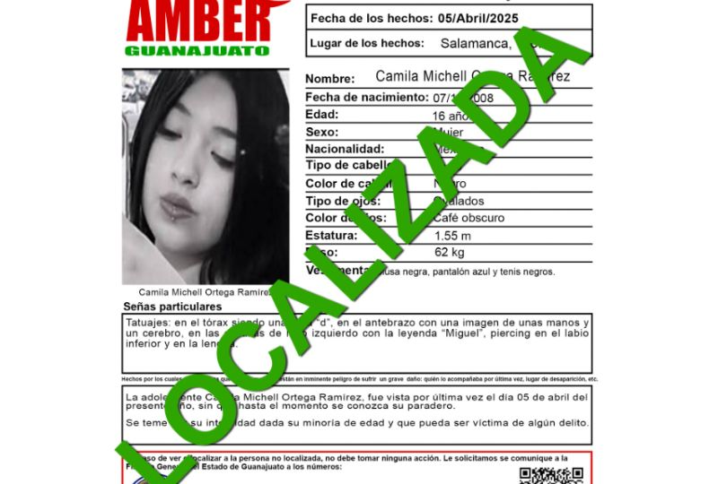 Publicado ensalamanca Activan alerta Amber por desaparición de la menor Camila Michell Ortega Ramírez en Salamanca por Redacción AM6 abril, 2025