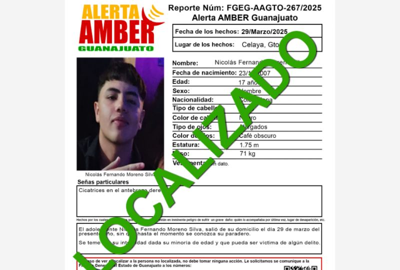 Publicado encelaya Desaparece en Celaya adolescente de nacionalidad colombiana; se llama Nicolás Fernando Moreno Silva por Redacción AM31 marzo, 2025