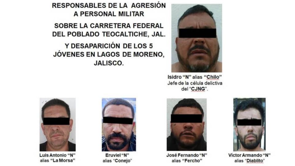 Publicado enestados Fuerzas federales capturan a célula del CJNG ligada a desaparición de cinco jóvenes en Lagos de Moreno por Roberto S. Vargas7 diciembre, 2023