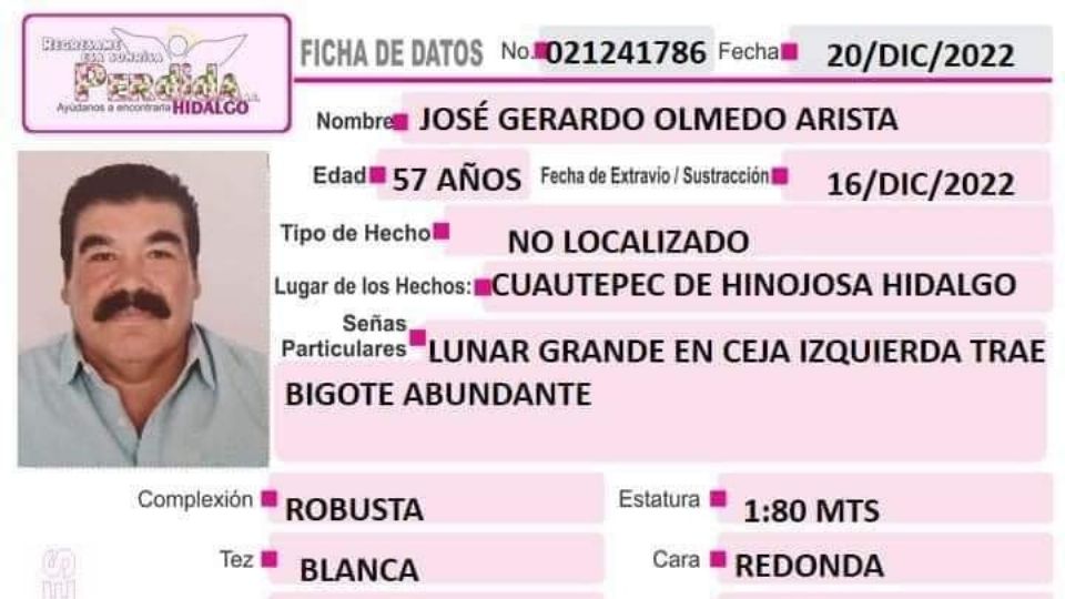 Publicado entulancingo Desaparece exalcalde de Cuautepec José Gerardo Olmedo Arista por Hidalgo Redacción21 diciembre, 2022