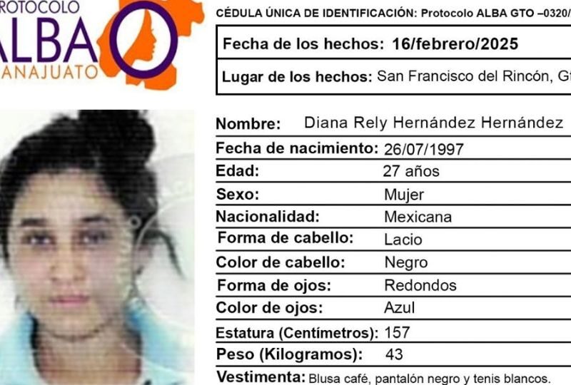 Publicado enguanajuato Urge localizar a Diana Rely Hernández Hernández, desapareció el 16 de febrero en San Francisco del Rincón, activan Protocolo Alba por Redacción AM13 marzo, 2025