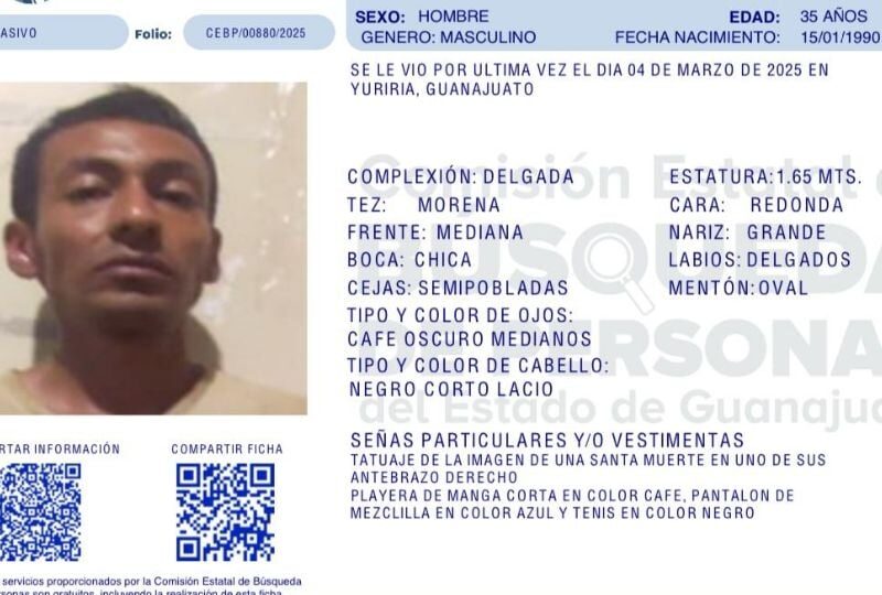 Publicado enguanajuato-sur Sergio López salió de su casa en Yuriria y ya no regresó; su familia pide ayuda para encontrarlo por Redacción AM13 marzo, 2025