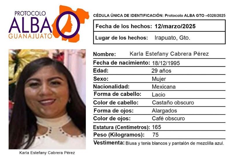 Publicado enirapuato Desaparece Karla Estefany Cabrera Pérez en Irapuato y activan Protocolo Alba Guanajuato por Redacción AM14 marzo, 2025