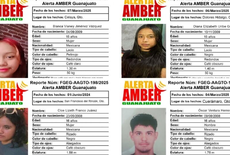 Publicado enguanajuato Alerta Amber Guanajuato: Cloe, Blanca, Diana y Óscar, desaparecieron en 4 municipios por Redacción AM8 marzo, 2025