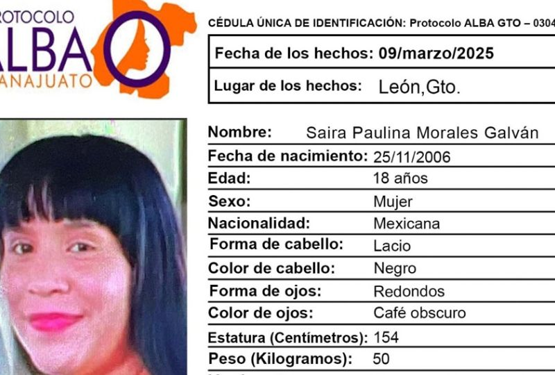 Publicado enleon La buscan urgentemente en León: Desaparece la jovencita Saira Paulina Morales Galván por Redacción AM9 marzo, 2025