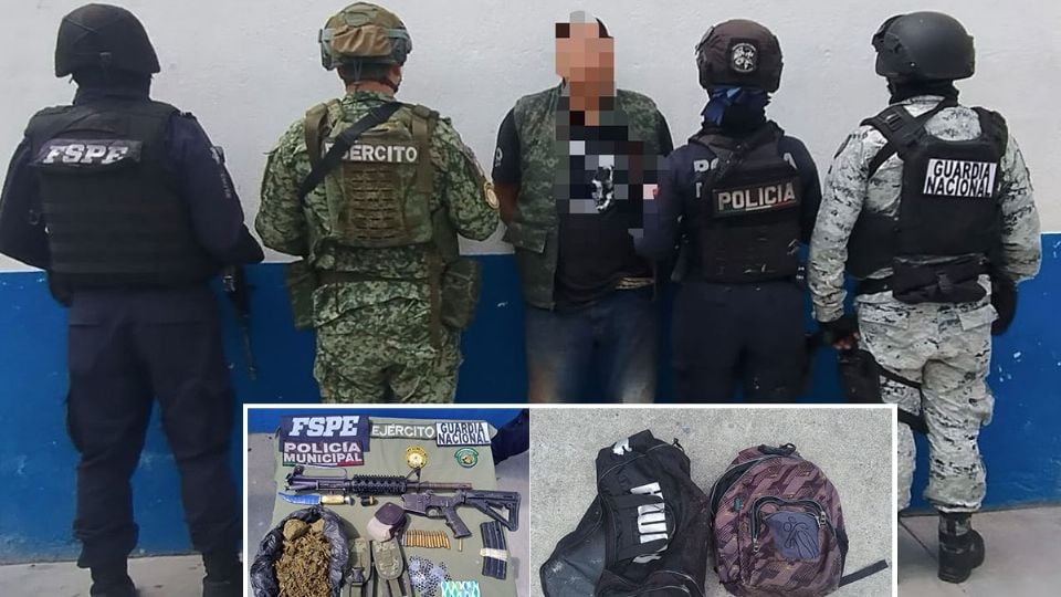 Durante un operativo en la comunidad de Tócuaro, fuerzas de seguridad detienen a hombre con fusil AR-15 en Acámbaro. También llevaba droga, cartuchos y equipo táctico.