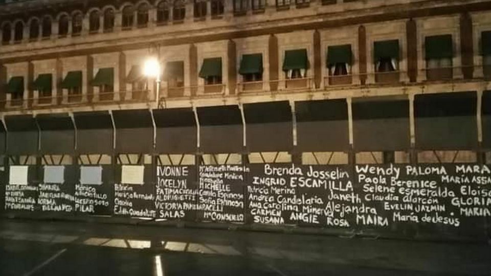 Publicado ennews Pintan nombres de víctimas de feminicidio en muro de Palacio Nacional por Horacio López Lobato6 marzo, 2021