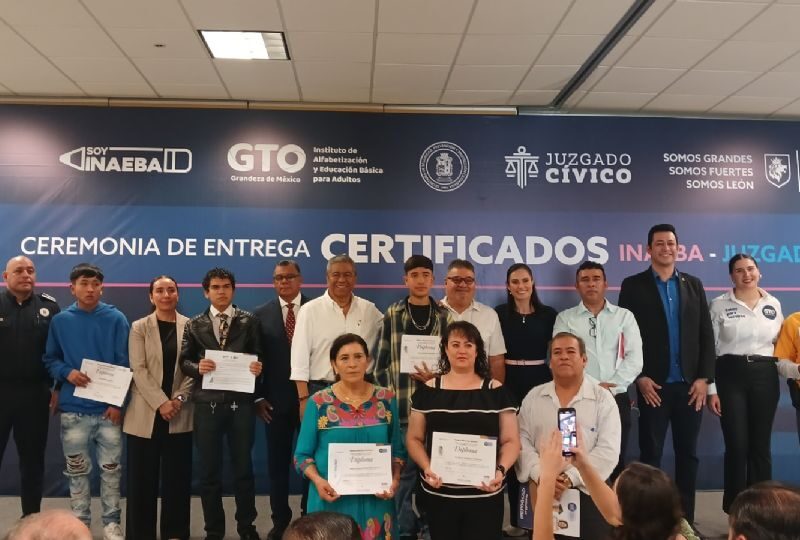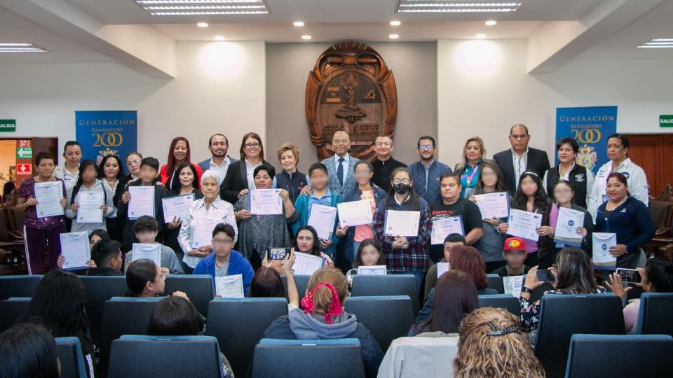 Concluyen sus estudios y reciben sus diplomas de la mano de maestros y representantes del INAEBA durante una ceremonia en el asilo La Conferencia en Salamanca.