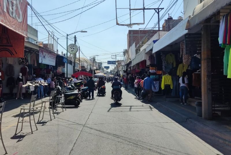 Visitantes del corredor comercial de Uriangato denunciaron obstáculos en las banquetas que dificultan el paso. Aunque el municipio realiza operativos para liberar el espacio, los comerciantes vuelven a colocar objetos que afectan la movilidad peatonal.
