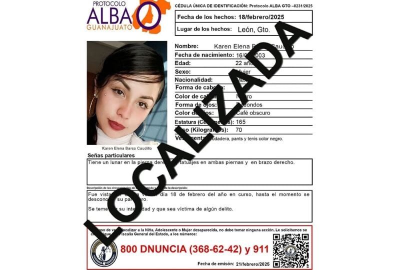 Publicado enleon Terminó la búsqueda: Karen Elena Barco Caudillo es localizada sin vida en León por Redacción AM10 junio, 2025