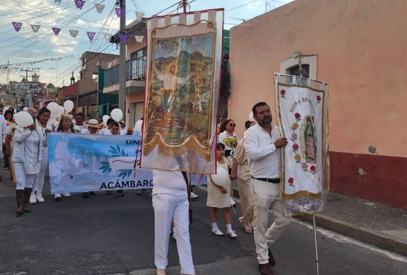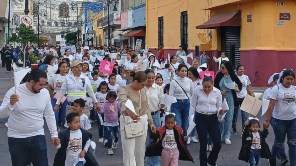 Cientos de niños de preescolar y primaria, vestidos de blanco, marcharon por el Centro Histórico con mensajes de esperanza. Formaron el símbolo de la paz en la Plaza Cívica, visibilizando la lucha contra la violencia.