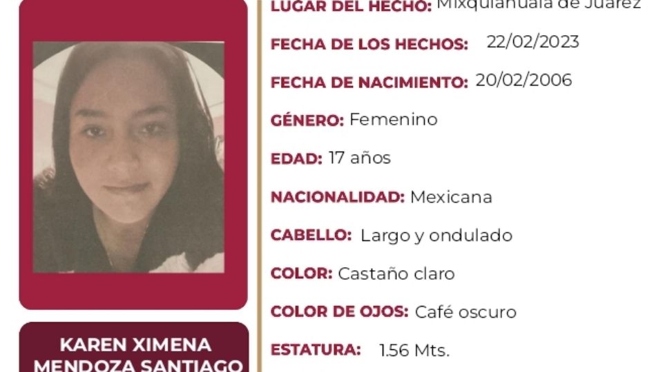 Publicado envalle-del-mezquital Desaparece en Mixquiahuala Karen Ximena Mendoza Santiago de 17 años por Hidalgo Redacción25 febrero, 2023