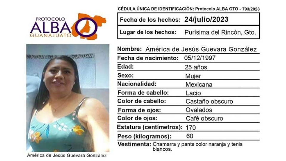 Publicado enguanajuato Activan Protocolo Alba por desaparición de América de Jesús Guevara González por Redacción AM25 julio, 2023