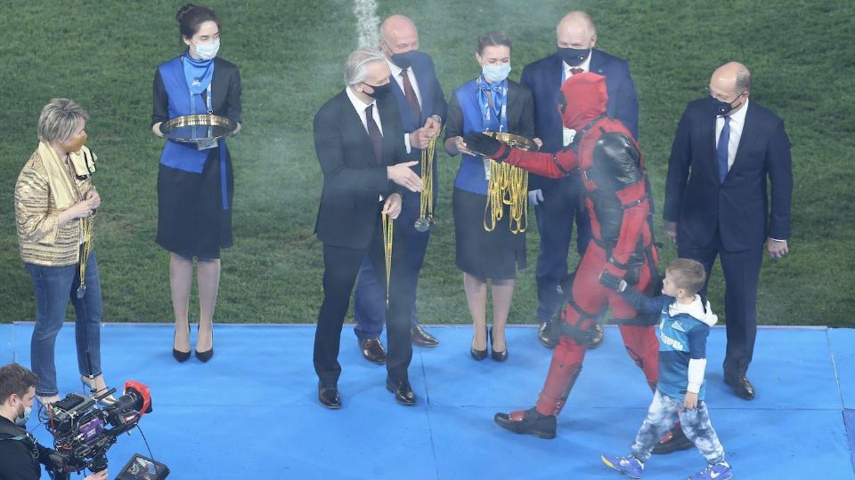 Publicado ensuperdeportivo Artem Dzyuba delantero del Zenit recibió su medalla de campeón disfrazado de Deadpool por Jorge Valenzuela2 mayo, 2021