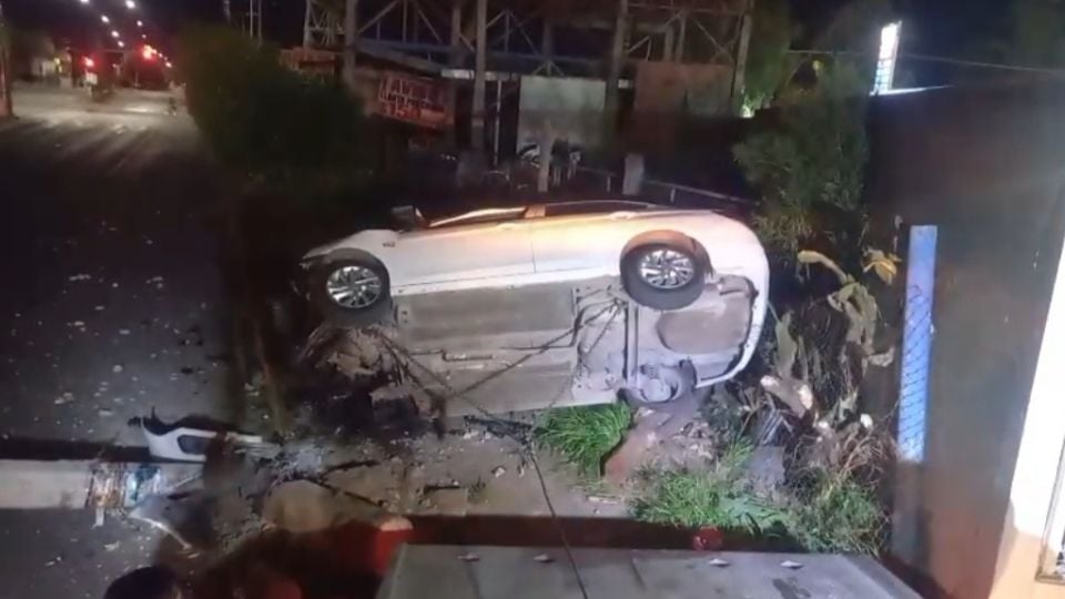 Accidente en el bulevar Vertiz Campero de León dejó a un joven herido. El auto, conducido por una persona de 19 años, volcó tras chocar con un poste.