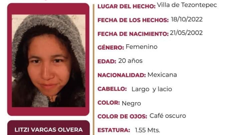 Publicado enhidalgo Buscan a Litzi Vargas, desapareció en Villa de Tezontepec por Hidalgo Redacción21 octubre, 2022