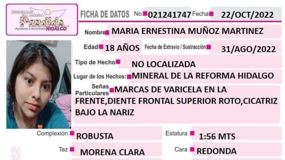 Publicado enzona-metropolitana Suman 50 días sin saber de María Ernestina Muñoz Martínez, tiene 18 años por Hidalgo Redacción23 octubre, 2022
