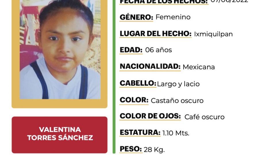 Publicado enhidalgo Buscan a Valentina Torres en Ixmiquilpan, emiten Alerta Amber por Redacción AM10 junio, 2022
