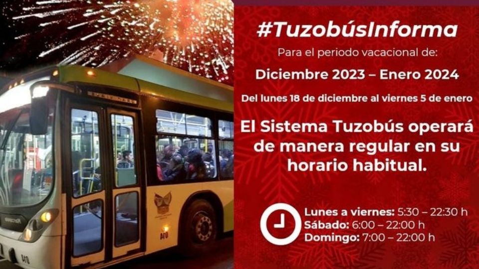 Publicado enzona-metropolitana Tuzobús operará de manera habitual en temporada vacacional por Redacción AM18 diciembre, 2023