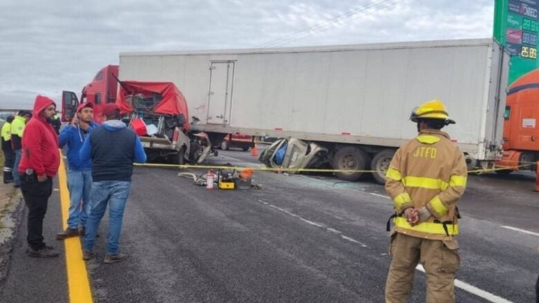 De acuerdo con los primeros reportes, la carambola se originó cuando un tractocamión rojo, acoplado a una caja, impactó por alcance a una camioneta tipo van y a una pickup Ford F-150 color crema.