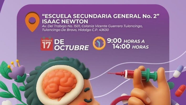 Con un horario de 10:00 a 14:00 horas, el próximo viernes 17 de octubre se llevará a cabo en la Secundaria Federal número 2 “Isaac Newton” la primera Feria Municipal de la Salud Mental y de la Prevención de Adicciones, cuyo objetivo es difundir información y fomentar la colaboración entre instituciones y sociedad civil en torno a dos temas prioritarios para la salud pública.
