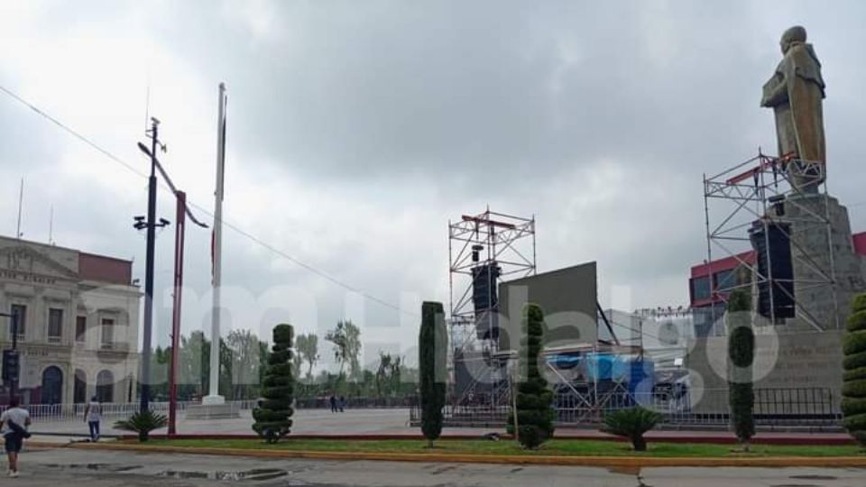 Durante la madrugada del domingo fueron retiradas las tarimas de madera colocadas alrededor de la plaza que fue remozada como parte del proyecto de mejoramiento urbano del gobierno de Hidalgo.