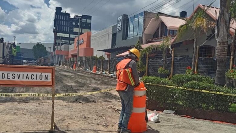 En la Plaza Bella de Pachuca se están llevando a cabo trabajos de pavimentación, lo que ha implicado el levantamiento del asfalto en dos de sus principales arterias.