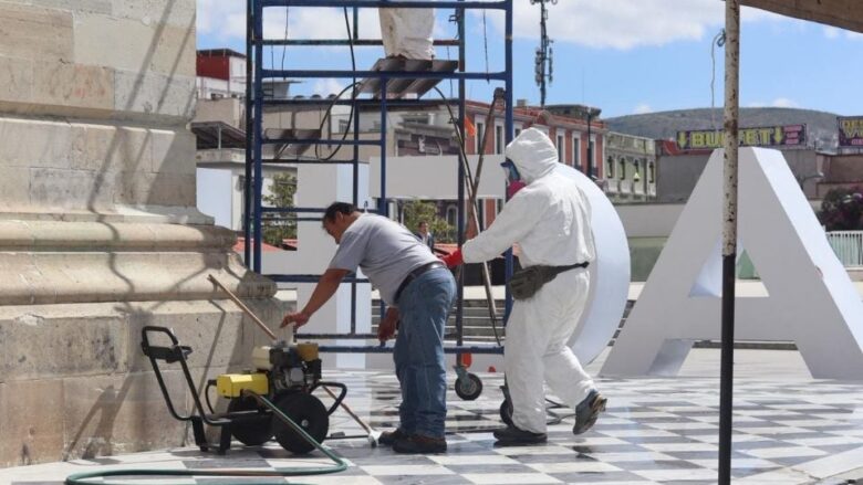 Personal del Instituto Nacional de Bellas Artes y Literatura (INBAL) está acelerando los trabajos de limpieza en el Reloj Monumental de Pachuca.